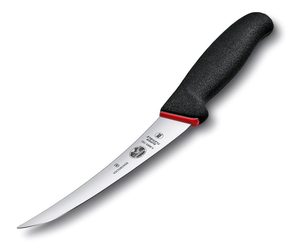 Victorinox Dual Grip -lihaveitsi on ammattikäyttöön suunniteltu veitsi, joka soveltuu monipuolisesti erilaisten lihojen käsittelyyn. Erittäin joustava, kapea ja kaareva terä mahdollistaa vaivattoman ja hallitun leikkaamisen. Terän pituus 15cm. Ergonominen ja erityiskarhennettu kaksikomponenttikumikahva takaa tukevan otteen ja vähentää käteen kohdistuvaa kuormitusta pitkäaikaisessakin työssä, sillä kahvaa ei tarvitse puristaa luistamisen välttämiseksi. Veitsi kestää steriloinnin 100 °C:een asti ja on NSF-sertifioitu. Valmistettu Sveitsissä. Kahvan materiaali: TPE ja PP-muovi.